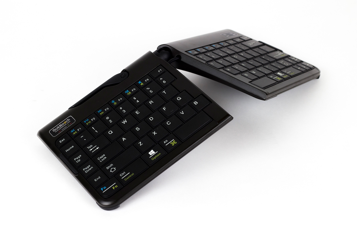 Goldtouch Travel Go2 Bluetooth Keyboard US QWERTYBei der geteilten Goldtouch Travel GO2 Bluetooth Tastatur ist der gewünschte Breite und der Neigungswinkel schnell und stufenlos verstellbar. Die Tastatur ist zusammenklappbar und eignet sich durch die kompakte Bauweise ideal für unterwegs. Durch das Fehlen des Nummernblocks bei kompakten Tastaturen kann die Mouse näher an die Tastatur gebracht werden, was die Belastung im Nacken und Schulterbereich wesentlich verringert.